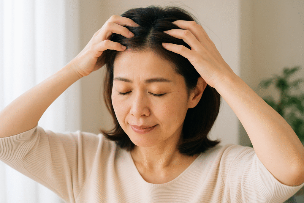 頭皮が重力で下がると、額・まぶた・ほうれい線にシワが入りやすくなり、一気に老け顔に。 - 髪のうねり・広がりが強くなる